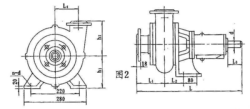 泵出口垂直向上,也可装成水平方向,本泵由弹性联轴器直接传动(亦可才艮据需要改用皮带传动)。